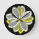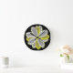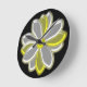 This awesome clock features a digital image of a daisy flower with white and yellow coloured petals with a yellow centre. The petals look like they are glowing with a beautiful reflective quality. The flower is on a black background for maximum contrast and the result is stunning.