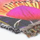 A quality printed throw has its advantages. This is a much finer weave throw than its loopier cousins, and though lighter, it is worth the investment for custom room accessorizing. The back is much prettier than the typical brown, and the fringe on the long sides very vivid, the selvage nicely done. Before photographing, I washed the throw in cold water, delicate, with a thicker woven throw the same size. On tumble dry low, this throw was dry in half the time as the other. This is a very practical quality if you use throws for furniture covers or to wrap up in frequently. The sleekness of the fabric makes it a great layer for accenting or protecting without the feeling of sitting on too much stuff. Perfect for napping or when you feel a light chill coming on. The color printing is beautiful and on this fabric, matched the design and color of my Photoshop image. This is an advantage for blending room fabrics and colors. The fringe on the short sides prints the colors from the design image and therefore varies from the side fringe. I streaked a white fractal line through the plaid pattern to give the illusion of weaving. This printed as crisp as an illusory thread, and put some white in the short side fringe, showing another advantage of print vs loomed- for artistic purposes, line lines, detail, and color integrity can be planned and preserved. My loomed throws have color limitations and more of a needlepoint texture. Print throws reproduce an exact image. The throw felt a little stiff straight out of the package, but this went away in the first delicate wash. Of course I searched the wash water for ink or bleeding and there was none.