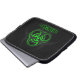 This black laptop sleeve features the international symbol for biological hazard: the biohazard trefoil! This logo is glowing with a mysterious green aura, as is the word "BIOHAZARD" below it. The background features a larger rendition of the biohazard symbol in dark gray.