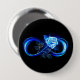 Luminous infinity symbol with glowing, beautiful, lushly blooming rose made of blue flames on black background.