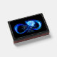 Luminous infinity symbol with glowing, beautiful, lushly blooming rose made of blue flames on black background.