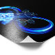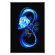 Luminous infinity symbol with glowing, beautiful, lushly blooming rose made of blue flames on black background.