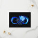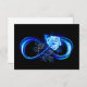 Luminous infinity symbol with glowing, beautiful, lushly blooming rose made of blue flames on black background.