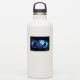 Luminous infinity symbol with glowing, beautiful, lushly blooming rose made of blue flames on black background.