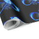 Luminous infinity symbol with glowing, beautiful, lushly blooming rose made of blue flames on black background.