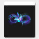 Infinity symbol with magical, purple glowing butterfly with transparent wings, on black background. Glowing butterfly.