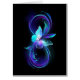 Infinity symbol with magical, purple glowing butterfly with transparent wings, on black background. Glowing butterfly.