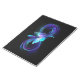 Infinity symbol with magical, purple glowing butterfly with transparent wings, on black background. Glowing butterfly.