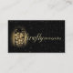 A glowing glass jar of golden yellow fireflies on a dark night background speckled with stars. An elegant and nostalgic design that reminds of summertime when the lightning bugs glow and light up the warm summer nights. Custom business information template fields for you to make it your own, including name, title, and contact information. The back is simple black with a warm white color text.