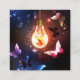 Glowing Light Bulb with Night Butterflies Square Business Card