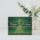 Our happy holidays design features a Christmas tree made of glowing gold lights and a gold swirl garland set on a rich green background. This modern holiday theme is a classy way to wish your family and friends a glowing holiday season and a promising New Year.