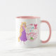 Rapunzel with flowers decorating her long hair, standing next to an ornate frame featuring the words "Glowing Like Rapunzel".