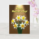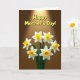 Designed with a softly romantic touch, the card centers on six white-petaled flowers with golden-yellow, trumpet-shaped centers, arranged close together like companions leaning in ❤️. Slender green stems rise from the lower area, giving the bouquet a gentle, upward lift that feels like an affectionate gesture between friends. The background shifts in a warm gradient from deep brown at the bottom to a glowing orange-brown near the top, like late-afternoon light settling in. A faint spotlight from above brightens the upper section and creates a cozy glow around the message. The text sits near the top, set in golden-yellow lettering that matches the flower centers and stands out clearly against the darker tones. Light and shadow add depth to the petals and make the yellow centers feel sunlit, as if they’re quietly sharing warmth 🌼. The petals look crisp against the velvety background, with the six blooms clustered in the middle and their stems tapering down toward the bottom edge.