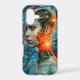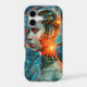 Protect your essential everyday technology while showcasing your passion for the futuristic cyberpunk aesthetic. This premium tough phone case acts as the absolute perfect vertical canvas for this cutting-edge sci-fi artwork. Positioned perfectly on the back of your device, the highly detailed image of a biomechanical female cyborg, complete with glowing neon orange neural sparks and cyan holograms, turns your phone into a striking, high-tech communication device straight out of the future.