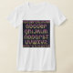 The material is a great quality that is hard to find with most tee shirts. Fabric was not see-through or thin at all, but was also very soft and comfortable. The shirt description states that it runs a little small, so I sized up one size for a perfect fit! I would definitely buy this type of tee shirt again because I love the fit and high quality fabric that I cannot find anywhere else. The printing was perfect and just as pictured. Loved the cute quote and really enjoy the tee in both the quality and design. I love quirky typography designs and funny quotes and I am extremely pleased with the overall quality and value I get at Zazzle!