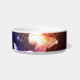 The Milky Way Galaxy and Blue and Purple bowl were beautiful enough online, but in person, they're stunning! The colors are bright and vibrant, and both bowls were well-packaged, wrapped in thick bubblewrap. The medium bowl is large enough for small to medium pets, and the ceramic is smooth and sturdy. I love the bowls! The cat names on the bowls are clear and sharp. Just what I wanted.