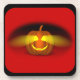 This design features an orange pumpkin that seems to be glowing in the dark. A candle lights up the eyes and a smile. A dark shadow is seen behind and to the sides of the pumpkin. These coasters have a black border. Mix and match.