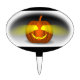 This design features an orange pumpkin that seems to be glowing in the dark. A candle lights up the eyes and a smile. A dark shadow is seen behind and to the sides of the pumpkin. These cake toppers have a black border added. Mix and match with these toppers.