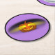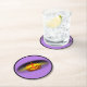 This design features an orange pumpkin that seems to be glowing in the dark. A candle lights up the eyes and a smile. A dark shadow is seen behind and to the sides of the pumpkin. A black border was added. These coasters come in round or square.