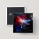 Glowing, flying, red dragonfly, with transparent, detailed wings on dark, nocturnal, luminous background with tropical plants and fireflies. Red dragonfly.