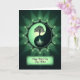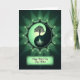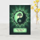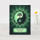 Designed with a circular emblem in layered greens, this card centers on a stylized tree that divides a balanced two-tone symbol, with a darker canopy leaning into a lighter half and glowing roots sinking into deep jade. The green range shifts from forest tones to bright lime, giving the scene a fresh, affectionate energy, like two close friends quietly cheering each other on ❤️. A scalloped border with ornate curls and tiny light accents wraps the emblem, adding a gentle, decorative richness. Behind the circle, a soft backlight creates a halo that glows against the dark background, as if the central image is being held in a calm, caring spotlight. Beneath the emblem, a small framed message sits centered near the bottom, set in flowing lettering that looks light in color against the darker field 🌼. The border’s fine patterning repeats around the edge with subtle highlights that echo the glow from the roots. The final detail is the luminous ring of light behind the green circle, fading outward into the surrounding darkness.