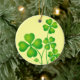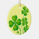 Round ceramic ornament with an image, on both sides, of glowing green shamrocks on yellow. See the entire St. Patrick’s Day Ornament collection under the HOME category in the HOLIDAYS section.