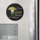 Do you glow because you love what you do? This is the refrigerator magnet for you. This magnet features my close-up photograph of a glowing ceramic solar mushroom with water drips on a dark evening. It has an inspirational message in varying typography "If you LOVE what you do it shows!" Order the magnet in round or square. Know someone who lives this message, give it as a sweet gift.