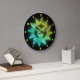 Beautiful glowing sun on black background lights this elegant wall clock.