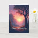 Designed with a sweeping sunrise-or-sunset landscape, the scene glows with gentle romance in the way the light seems to lean in and wrap everything together ❤️. A massive, old tree stands in the right foreground, its thick trunk and twisting branches dark against the sky while thin edges catch a golden rim of light. Farther back, softer tree shapes fade into mist, as if they’re quietly keeping each other company on the way to the horizon. The sky shifts from deep purple at the top into bands of pink and warm orange around a bright, round sun, and a light haze makes the distance look tender and calm. A narrow path curls in from the lower left, guiding the eye through warm grasses and shadowed patches like a slow walk shared with someone close 🌼. Over the center of the image, celebratory text sits across the glowing middle sky in a light color that stays readable against the brighter sunlit area. Fine details show in the rough bark, the softly lit grass tips, and the misty tree line that melts into the pastel horizon.