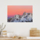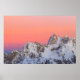 Stunning scenery just after the sunset with the sky in magical colors and snowy mountains.