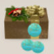 Personalized Christmas sticker design featuring gold snowflakes and glowing lights on a gradient teal background. The text is fully customizable. To change it use the Personalize option. For more changes, such as changes to the font, font color or text layout, use the Edit design tool option.