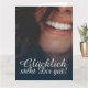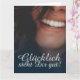 Kompliment Karte mit lachendem Frauengesicht und handschriftlichen Grüßen auf der Vorderseite der Karte. Restliche Flächen stehen zur freien Verfügung.