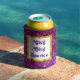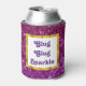 A can cooler with the funny saying: glug glug sparkle. Designed with a fancy and elegant design. The background composed of pink and purple sparkling glitter gemstones. Trendy and feminine vibe. A square frame with a faux-gold-foil border layered over top with the text inside.
