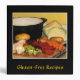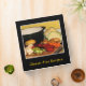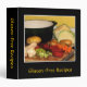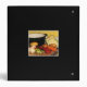 Easily customize the front and spine text on this gluten-free recipe binder which is decorated with the makings of a fine GF vegetable soup. The carrots, beets, cabbages, potatoes, onions, garlic and celery are chopped and ready for the pot. The black background and gold text complete a cheerful, homey kitchen design.