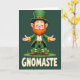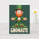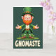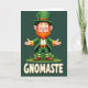 Designed with a leprechaun-like gnome standing front and center, this St. Patrick’s Day scene uses a deep green background to frame him like a friendly spotlight. He wears an emerald suit and a tall green top hat with a gold buckle, and his closed eyes and rosy cheeks give him a tender, content look, as if he’s greeting a close friend 💚. His arms stretch outward with open palms, a gentle gesture that feels like an easy invitation to step closer. A bright orange beard spills down his chin, adding warm contrast against all the greens and making his face the first thing you notice. Along the bottom edge, a strip of green grass is scattered with small shamrocks ☘️, grounding the character in a simple outdoor setting. The word “GNOMASTE” sits across the lower portion in large, easy-to-read letters, standing out clearly against the green beneath him. The hat’s buckle shines in yellow-gold near the top of the figure, while the sturdy brown boots rest just above the grassy strip.