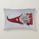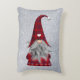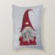 Cute winter gray bearded gnome wearing a plaid outfit with snowflakes and a heart on his cap accent throw pillow.