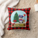 Gnome mail carrier and Snowman mail carrier snow globe reversable throw pillow. Featuring the "Gnomes with Little Red Trucks" and "Snowmen with Little Red Trucks" artwork of Rick Ellinger. Gnome mail carrier snow globe with red and black Buffalo check on one side, snowman mail carrier snow globe with black and white Buffalo check on the reverse side. Perfect gift for the gnome or snowman collector on your gift list, or for your mail carrier!