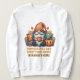 This design depicts a charming gnome sitting on the floor in front of a cozy sofa, next to a pumpkin, embodying an autumn theme.