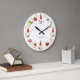 This clock tells a story! At 3 o'clock, Mr. Gnome starts his day, seed in hand. At 6 o'clock, he plants and waters the seed. At 9 o'clock, he picks a flower for his Love. And at 12 o'clock, it's play-time (aka, hula hoop-time!)