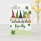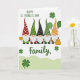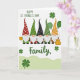 This design shows five gnomes lined up on a white background, their tall hats and long white beards creating a cozy little St. Patrick’s Day scene 💚. Each gnome has its own look—one hat has red polka dots, while others show green patterns or black-and-white speckles—and they stand close enough to feel like a friendly group photo. The greens range from deep forest to soft sage, with small pops of red, orange, and black adding contrast without crowding the page. On the far left, a gnome holds a small yellow mug, and a nearby gnome stands beside a shiny gold pot as if guarding it for a friend ☘️. Small four-leaf clovers are scattered around them, and green balloons float up from two hats as though they’re tied on for a shared celebration. Across the top, “HAPPY ST. PATRICK’S DAY!” sits in green lettering, centered above the row of gnomes. Near the bottom, the word “Family” appears in green, placed under the gnomes like a label for the group. The hats show dotted, textured, and speckled patterns, and the balloons rise above the gnomes in matching green.