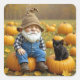 Gnome Farmer and Black Kitten On Pumpkins Square Sticker