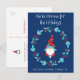 Gnome for Holidays Cute Elf Floral Wreath Blue Holiday Postcard
