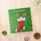 This three ring binder has a gnome wearing a dark red pointy hat in a red Christmas stocking with holly leaves and two candy canes on a green background with swirls. Customize your text on the front with the templates.