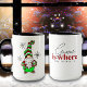 Gnome is where the coffee is cute Christmas coffee mug with a hand drawn cartoon gnome holding a coffee cup. On the back the quote.