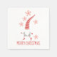 A cute red and white illustrated Christmas gnome with snowflakes, Merry Christmas paper napkins for you holiday cocktail party.