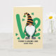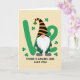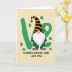 This card shows a friendly St. Patrick’s Day scene on a light cream background, centered on a small gnome who feels like a sweet companion you’d want to keep close. Behind the gnome, oversized green “V2” letters sit large and steady, like a backdrop that frames the character and adds a fun graphic twist 💚. The gnome has a full white beard, a small pale nose, a green tunic, and grey boots, standing calmly as if posing for someone special. Its tall cone hat is striped in black and orange and fastens with a shamrock-shaped buckle that has tiny heart-like eyes, giving the gnome a flirty, amused look ☘️. Around the scene, several green three-leaf clovers are scattered, adding little points of celebration and a sense of shared luck between friends. The phrase “THERE’S GNOME ONE LIKE YOU” appears in uppercase near the bottom, set in dark lettering that stands out clearly against the cream background. The overall look uses flat areas of green, orange, black, and white with simple outlines, and the clovers float around the big green “V2” while the striped hat rises high above the gnome’s beard.