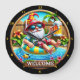 This whimsical wall clock features a cheerful gnome relaxing in a pool. He's floating on an inner tube, holding a beer, and enjoying a sunny day. The clock brings a humorous and leisurely vibe to any room. Perfect for adding a touch of humor and personality to your home.