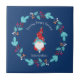 Gnome Sweet Gnome Blue Modern Elf Floral Wreath Ceramic Tile