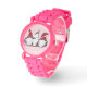 I only have one complaint. I ordered the watch with clear case and strap, and what was sent was white case and strap. I'm going to keep it because 1) it looks very nice in white, and 2) it would take too long to get a replacement made and sent in time for my occasion. Aside from the mix up with the color, the watch does look very good in white. The purple dial is actually sparkly which did not show in the online images. That was a nice surprise. If you like Swatch watches this is very similar to those. It's 33.6mm in diameter, 10.5mm thick, and 40.6mm lug to lug. Stainless steel case back says 3ATM/30m WR, so no swimming or showering or submerging this one. If you like Woodstock, this is a great choice.