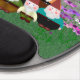 The plastic backing is nice and sturdy. The grippy pads underneath keep the mouse pad where I put it on my table. The pad the mouse sits on is cut well to fit the backing. The wrist pad is perfectly soft, supportive, and thick. I'm left-handed, and this mouse pad works just as well for me as it does for my right-handed friends. I'm the designer of HippieClecticHope products. I'm blown away by how well my intricate fractals turn out on the tangible items in the Zazzle Marketplace. This particular mouse pad ***appears*** like a 3D object... A mathematically-engineered rainbow black opal, inlaid under transparent fabric...